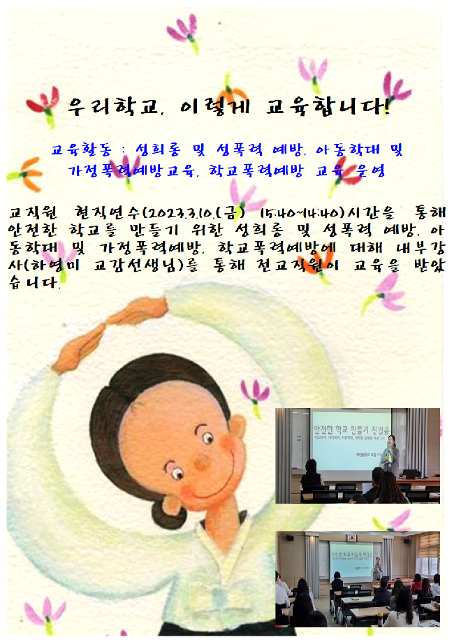 우리학교 이렇게 교육합니다.(교직원 대상 성희롱 및 성폭력 예방, 아동학대 및 가정폭력 예